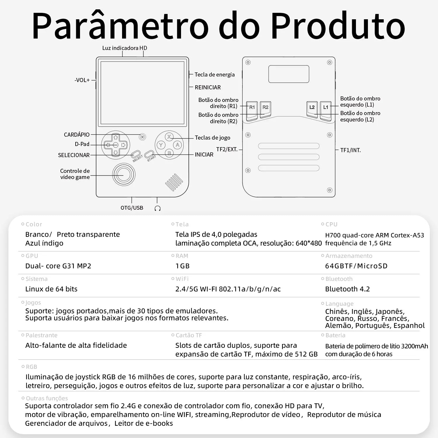 | Outras funções | Suporta controlador sem fio 2.4G e conexão de controlador com fio, conexão HD para TV, motor de vibração, emparelhamento on-line WIFI, streaming |