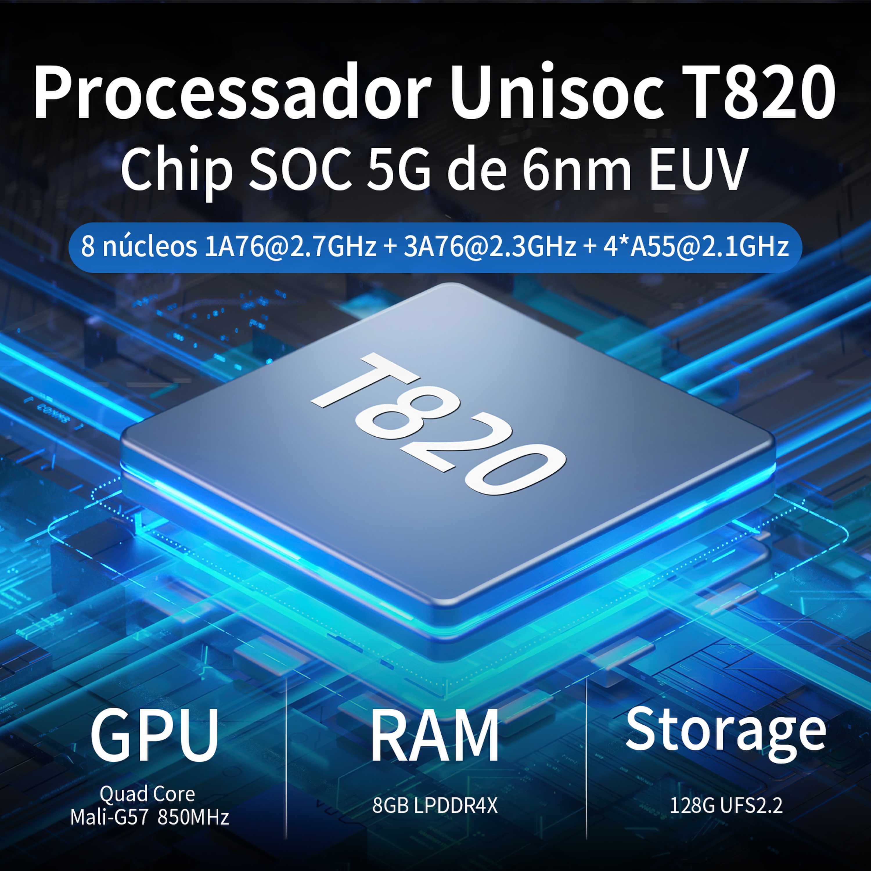 | CPU | Unisoc T820 processor, 6nm EUV 5G SOC chip 8 cores 1*A76@2.7GHz+3*A76@2.3GHz+4*A55@2.1GHz |