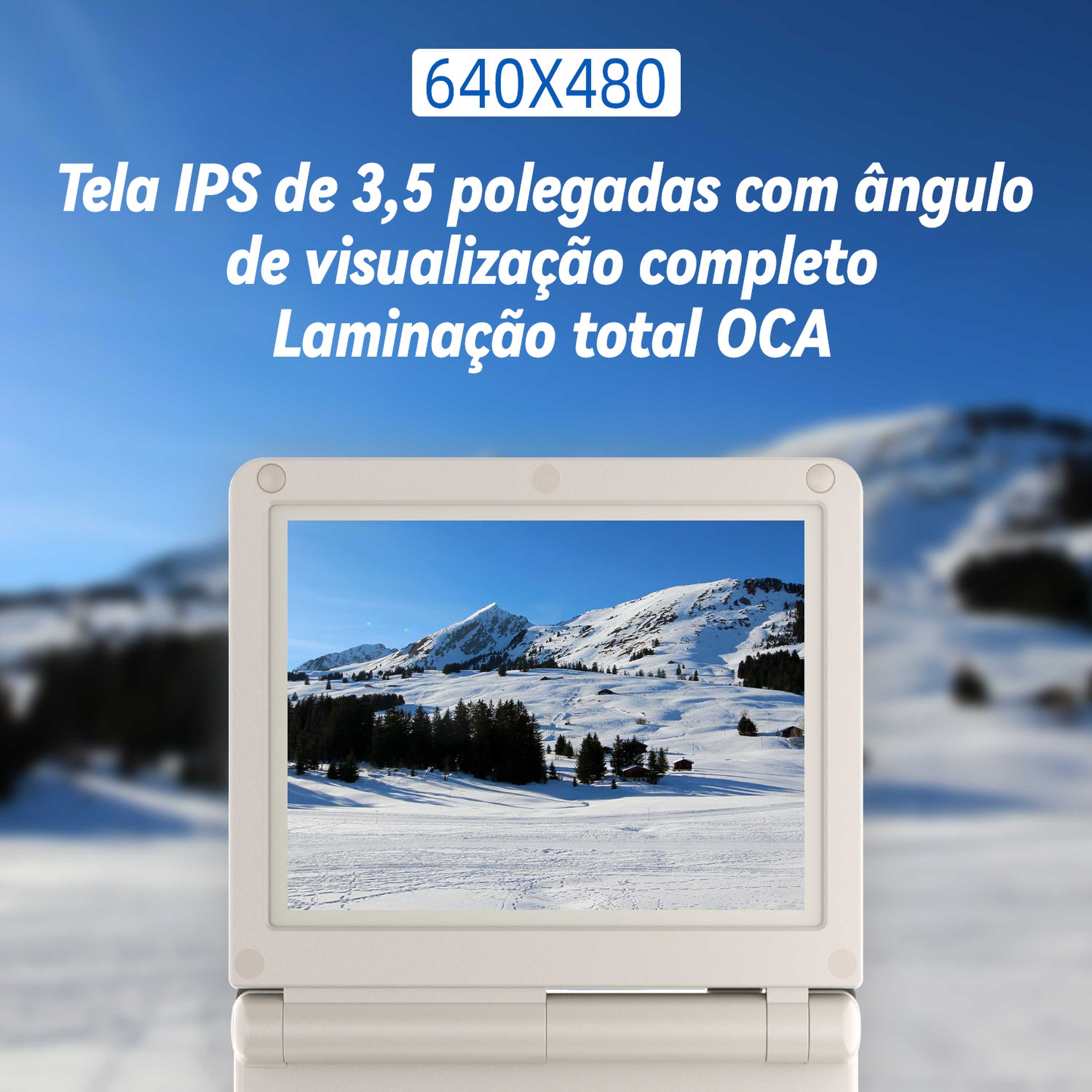 | Tela | Ângulo de visão completo IPS de 3,5 polegadas, laminação completa OCA/640*480 |