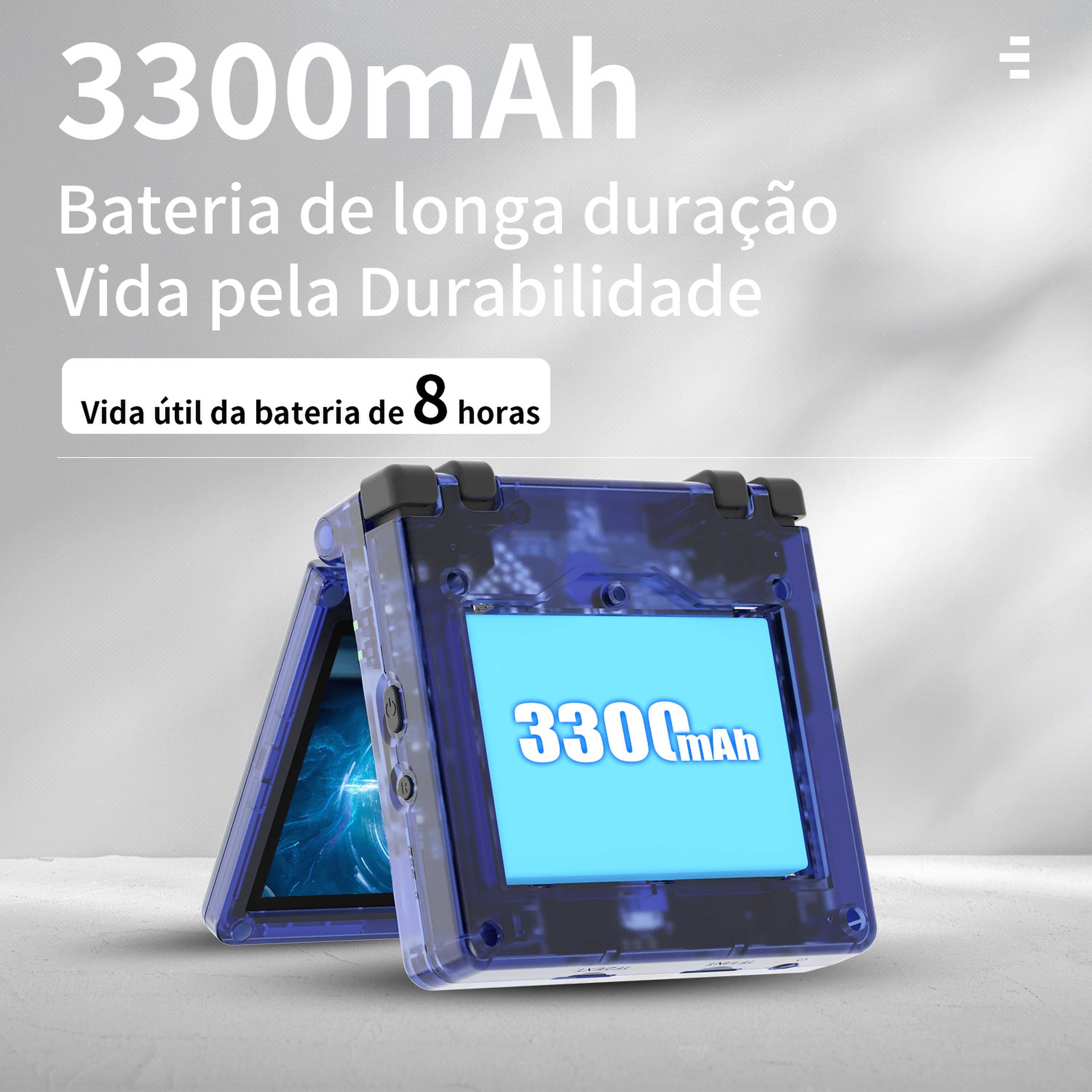 | Bateria | Bateria de polímero de lítio 3300mAH, com duração de 8 horas |