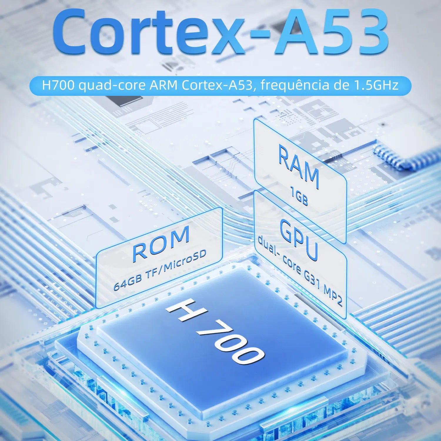 | CPU | ARM Cortex-A53 quad-core H700, frequência de 1,5 GHz |