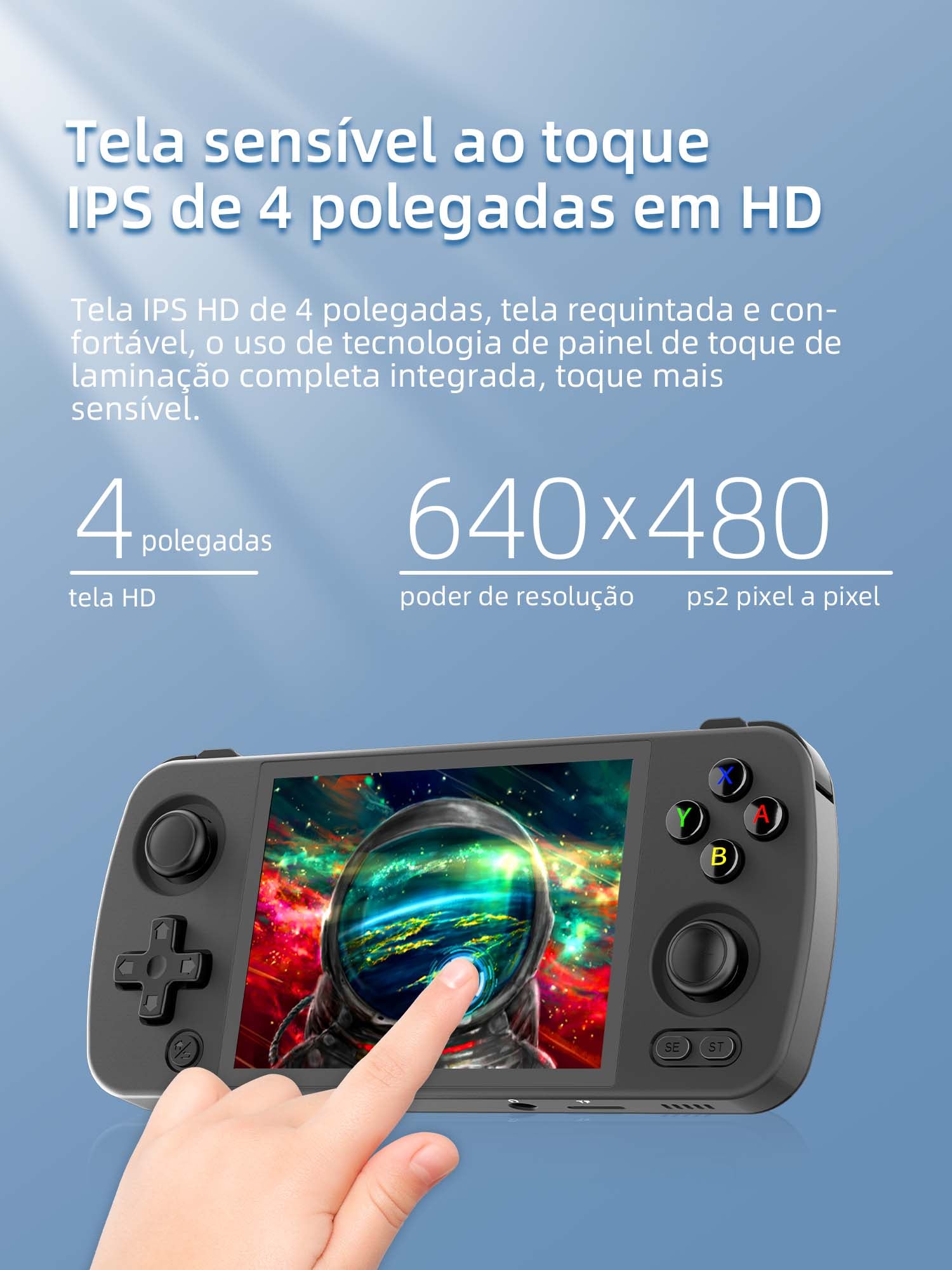 | Tela | Tela sensível ao toque IPS de 4 polegadas, resolução 640x480 | |||