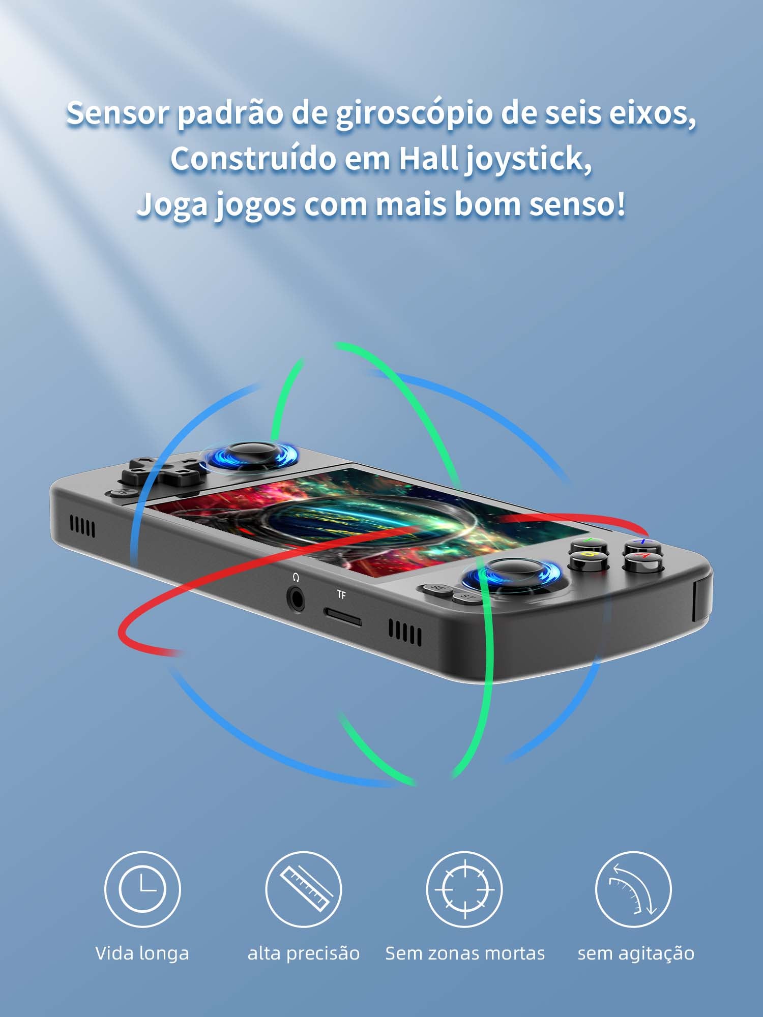 | Outras funções | Joystick de Hall embutido, sensor giroscópio de seis eixos, suporta atualização sem fio OTA, jogos multiplayer online, streaming, tela sem fio, motor de vibração, suporta exibição e configuração livre de vários atributos de função, como fone de ouvido estéreo de 3,5 mm, configuração de economia de energia, brilho da tela, etc. | |||
