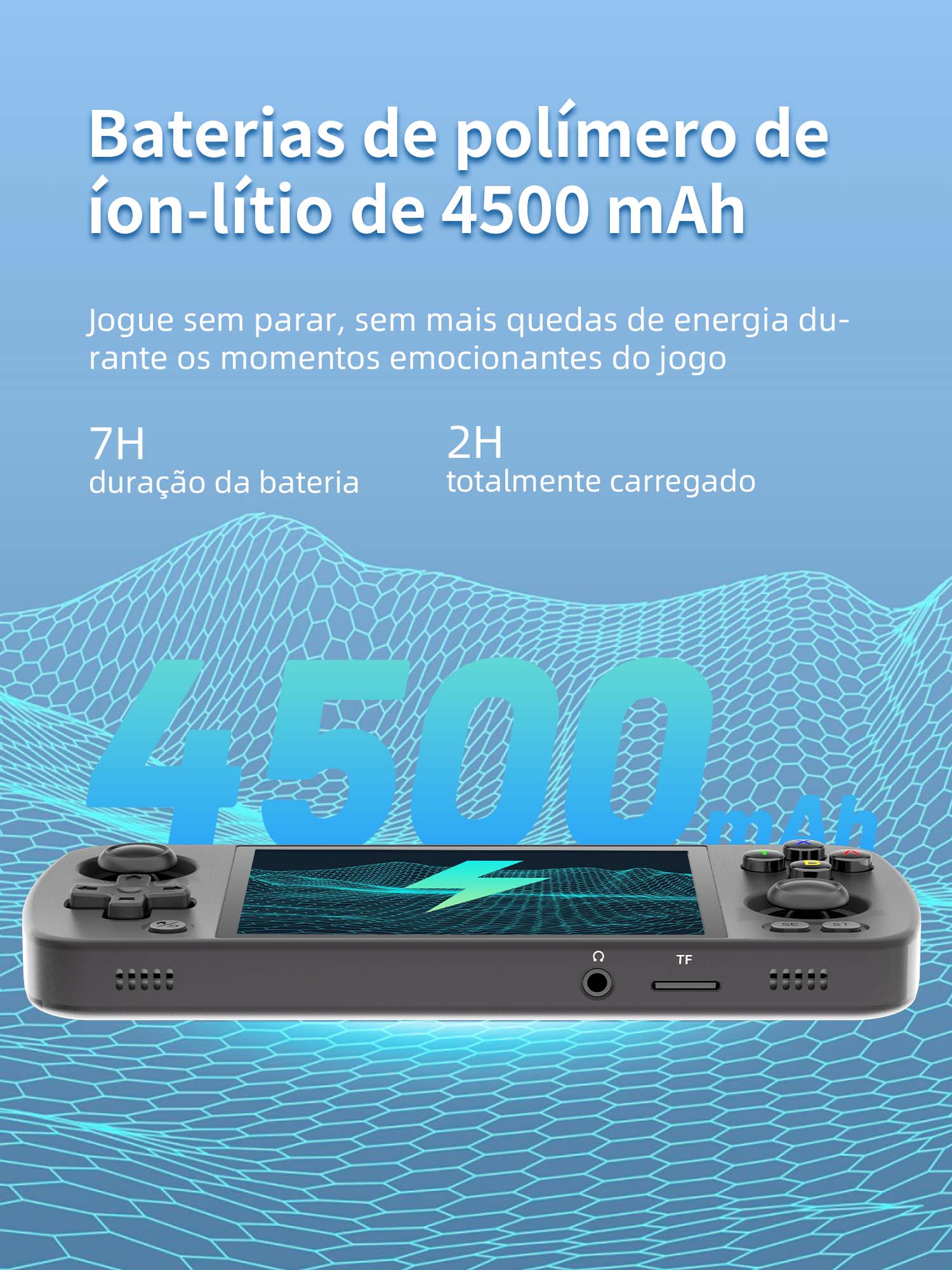 | Bateria | Bateria de íon de lítio de polímero de 4500mAh, carregamento completo em 2 horas, duração da bateria de 7 horas | |||