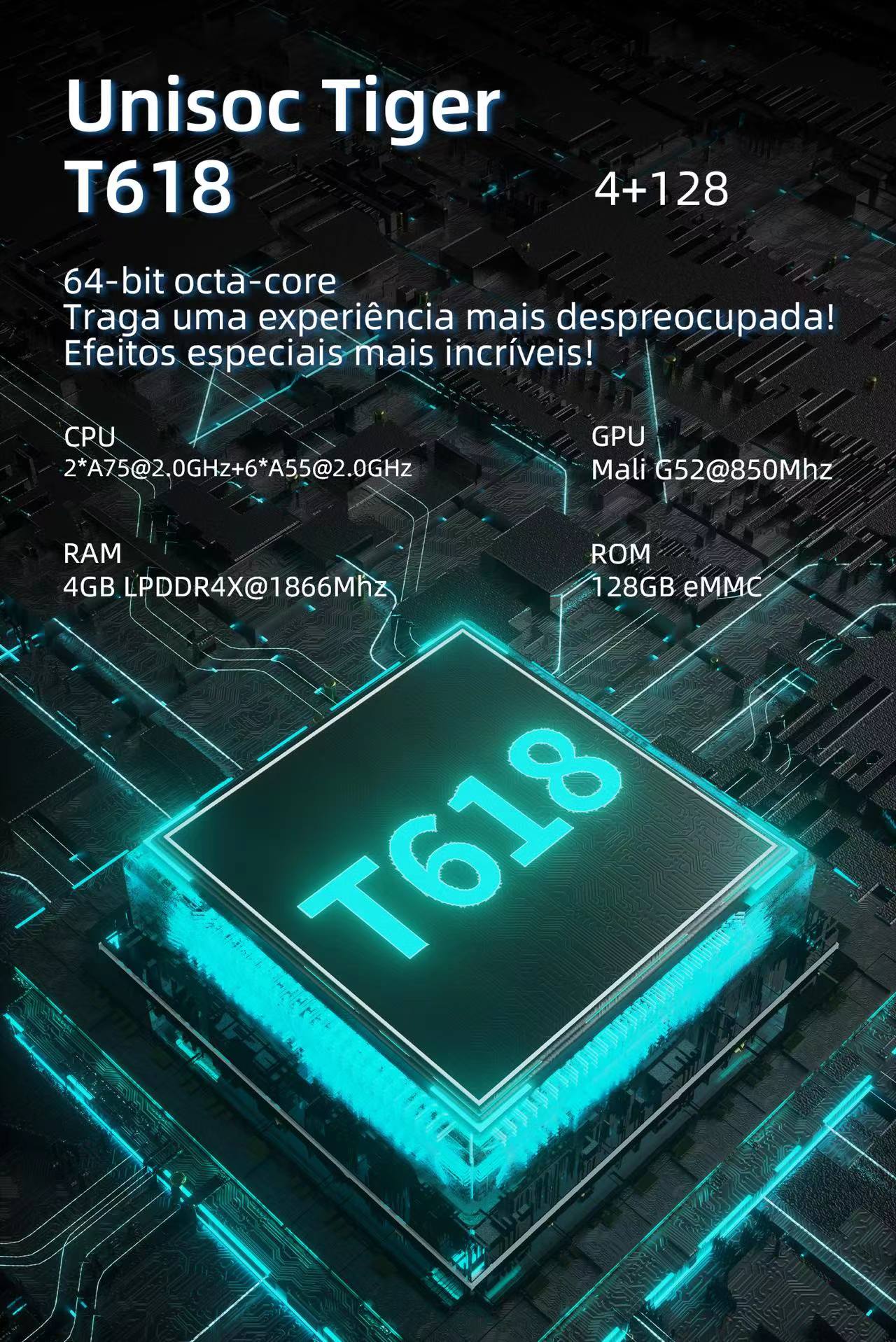 | CPU | Unisoc Tiger T618 64-bit octa-core 2*A75@2.0GHz+6*A55@2.0GHz | |||