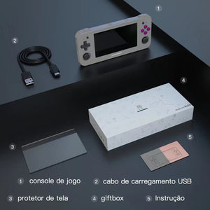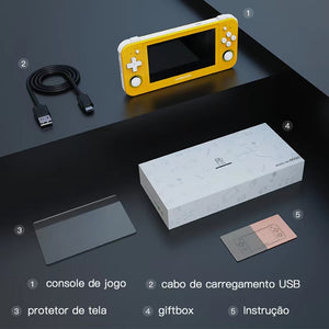 Joystick Hall embutido, Sensor padrão de giroscópio de seis eixos, Suporte a atualização OTA,Suporte WIFI de combate on-line, streaming,elenco,motor vibratório/fones de ouvido estéreo de 3,5mm/ ajuste de economia de energia, brilho do visor e outras configurações de propriedades funcionais |