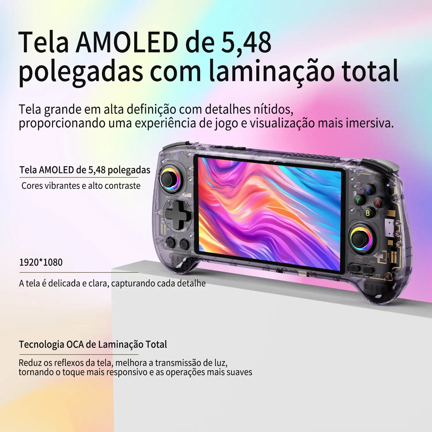 | Tela | Tela AMOLED de 5,48 polegadas, laminação completa OCA 1920*1080. |